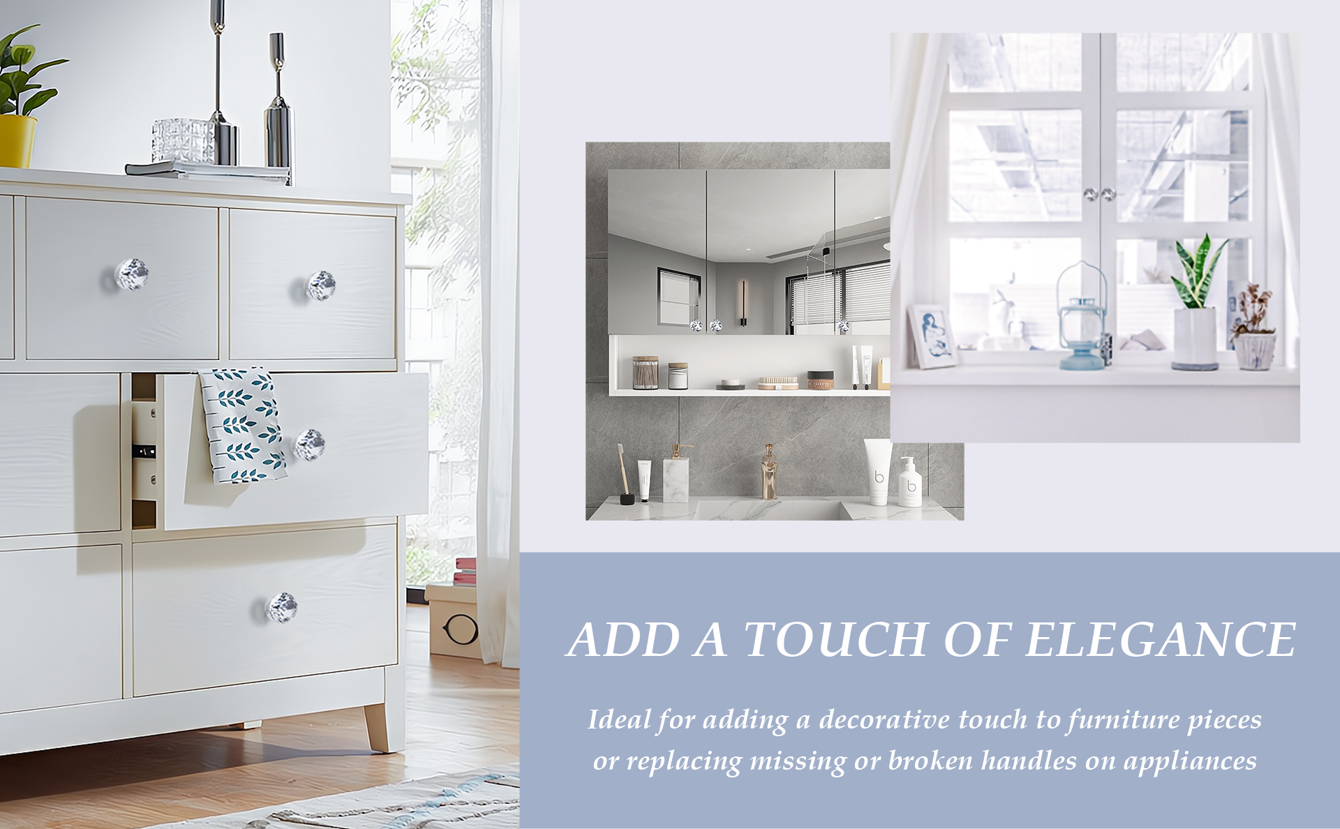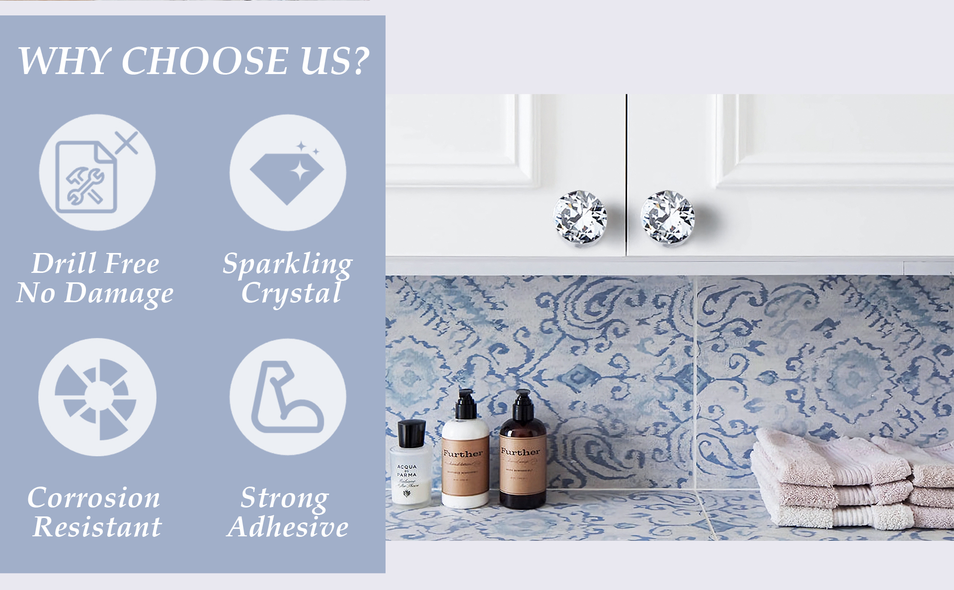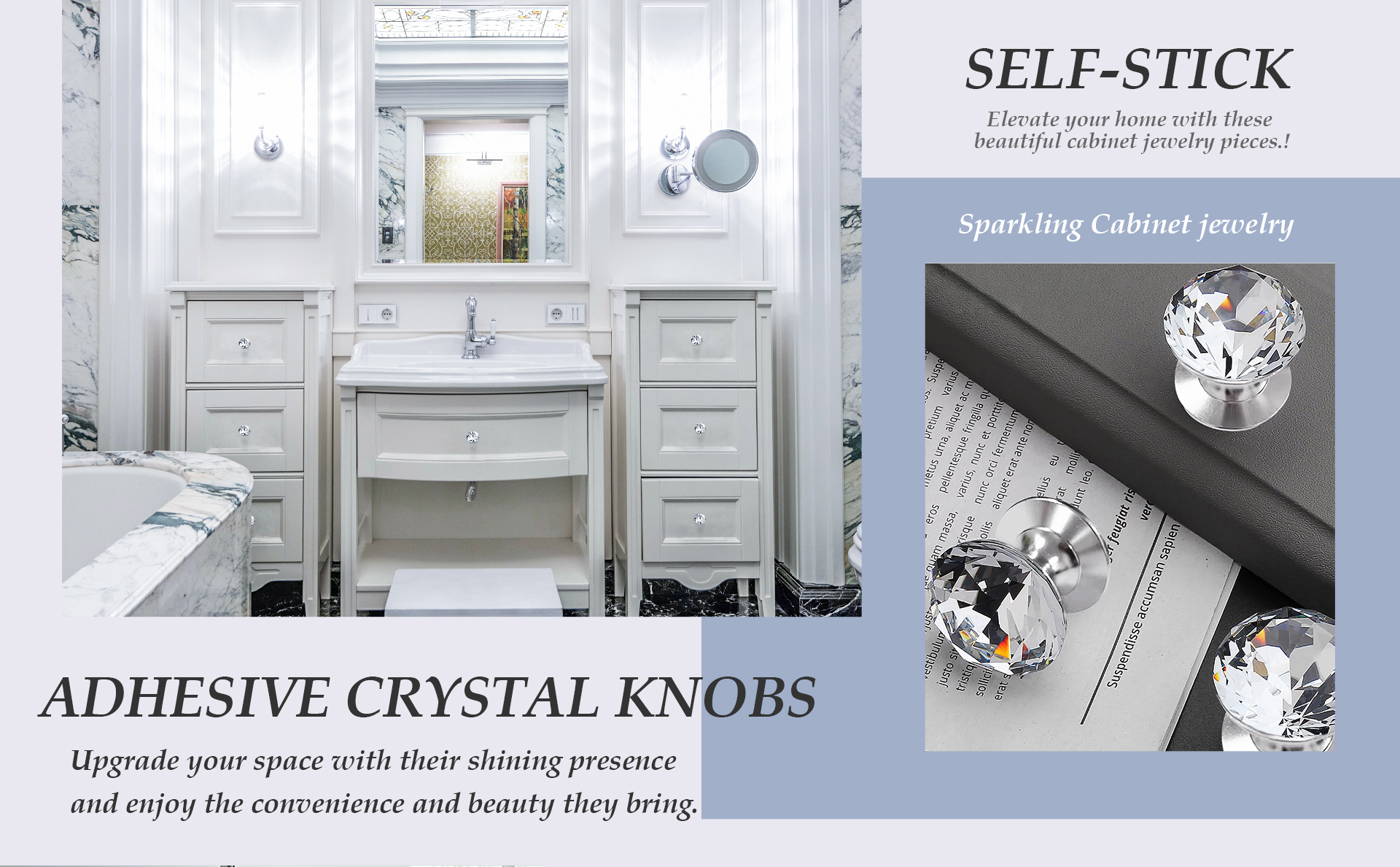 Self-Adhesive Crystal Knobs Drill Free K9 Crystal Pulls Mirror Doors Knobs