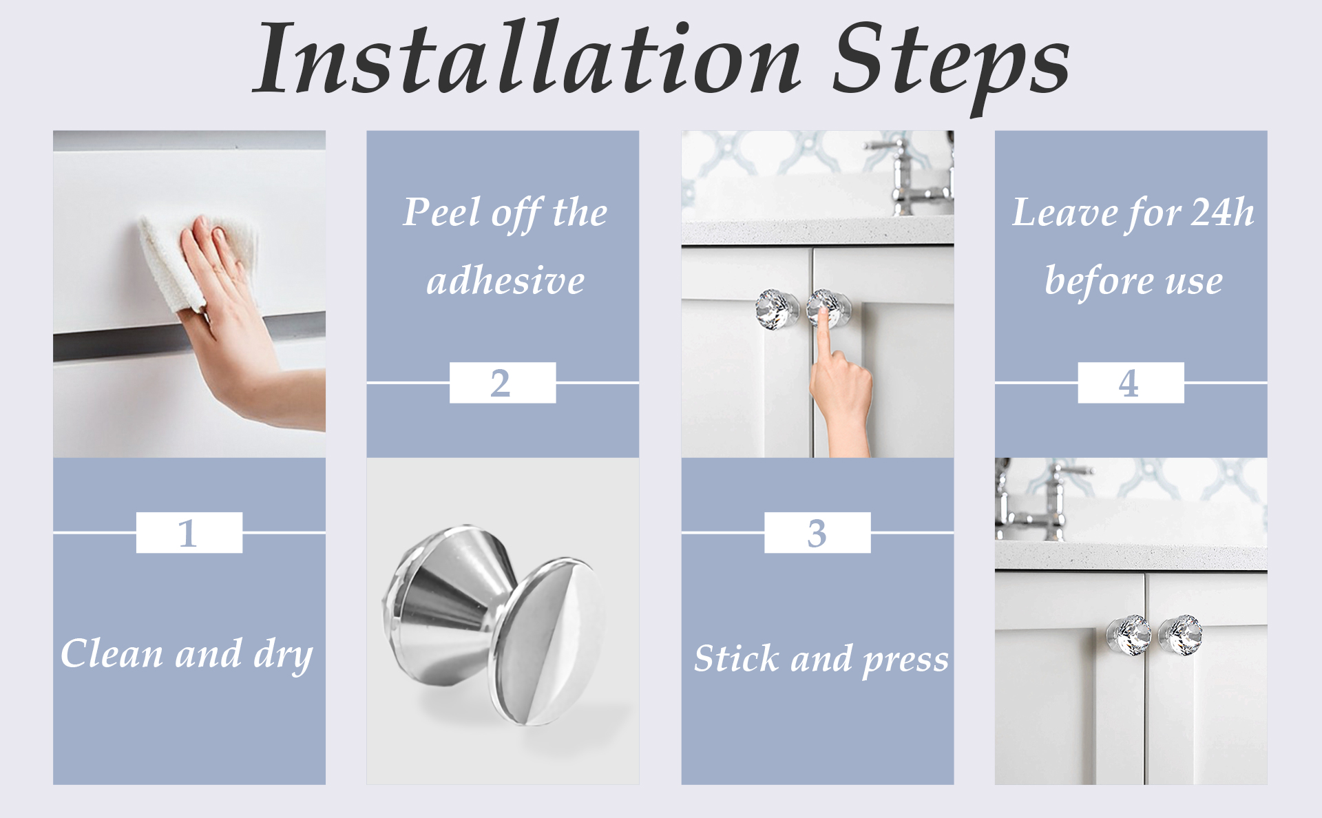 4 Pack Crystal Self Stick Knobs K9 Clear Crystal Glass Pulls